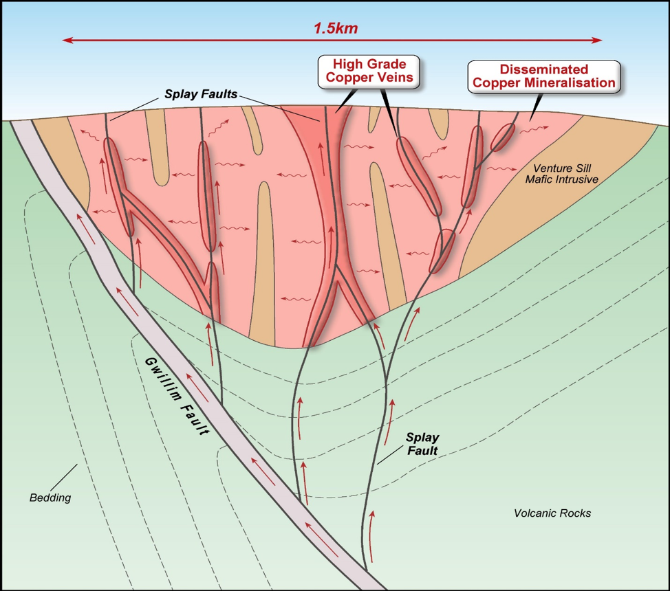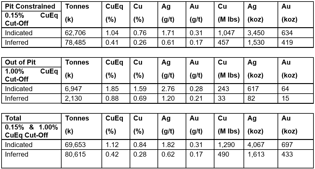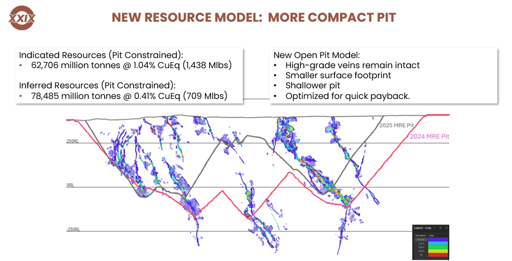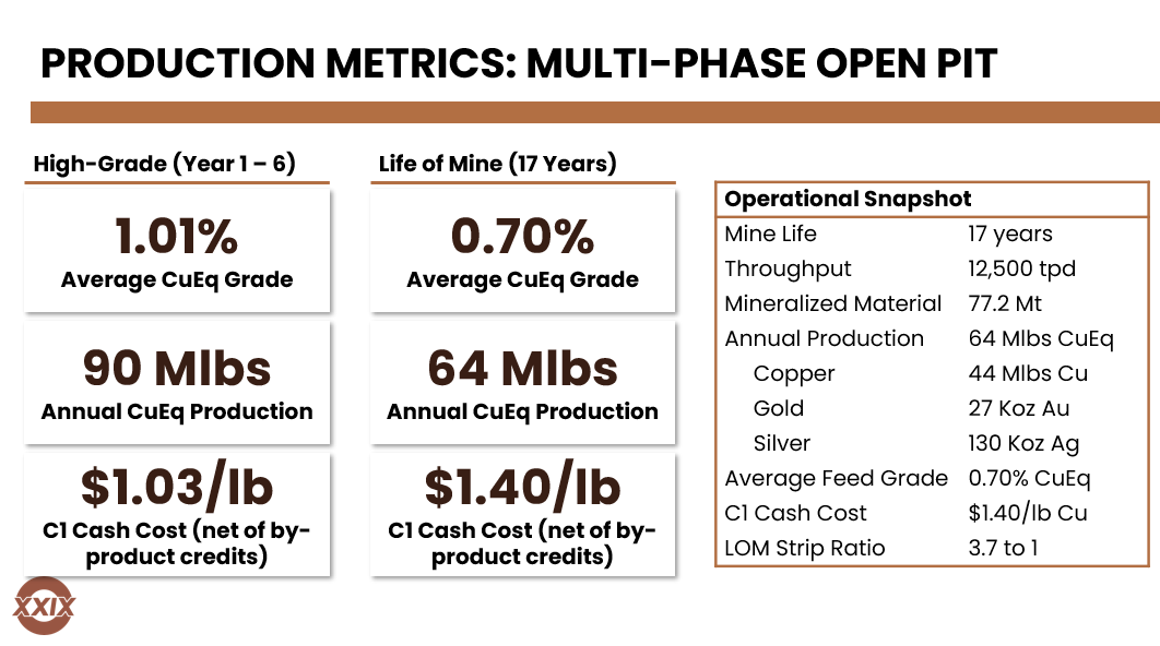 An October 2025 Preliminary Economic Assessment outlined a 12,500 tpd open pit operation over a 17-year mine life, generating an after-tax NPV8% of $505M, IRR of 27.2%, and a 2.3-year payback period ($4.35/lb copper price, $3,000/oz gold price, $30/oz silver price).