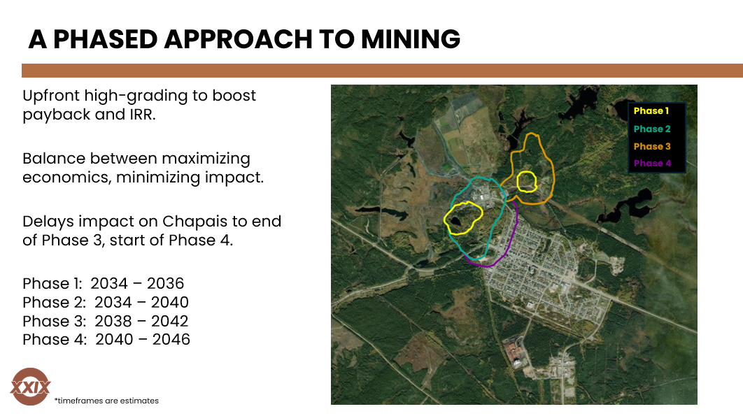 XXIX acquired the Springer and Perry properties from Ex-In, who acquired the properties in 1993 and digitized the abundance of data from Falconbridge operations. Falconbridge, between 1953 and 1991, previously mined both the Springer and Perry mines. Together, they produced 23 million tonnes grading 2.4% copper and 0.3 g/t gold.