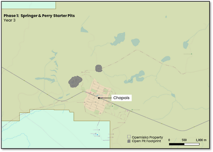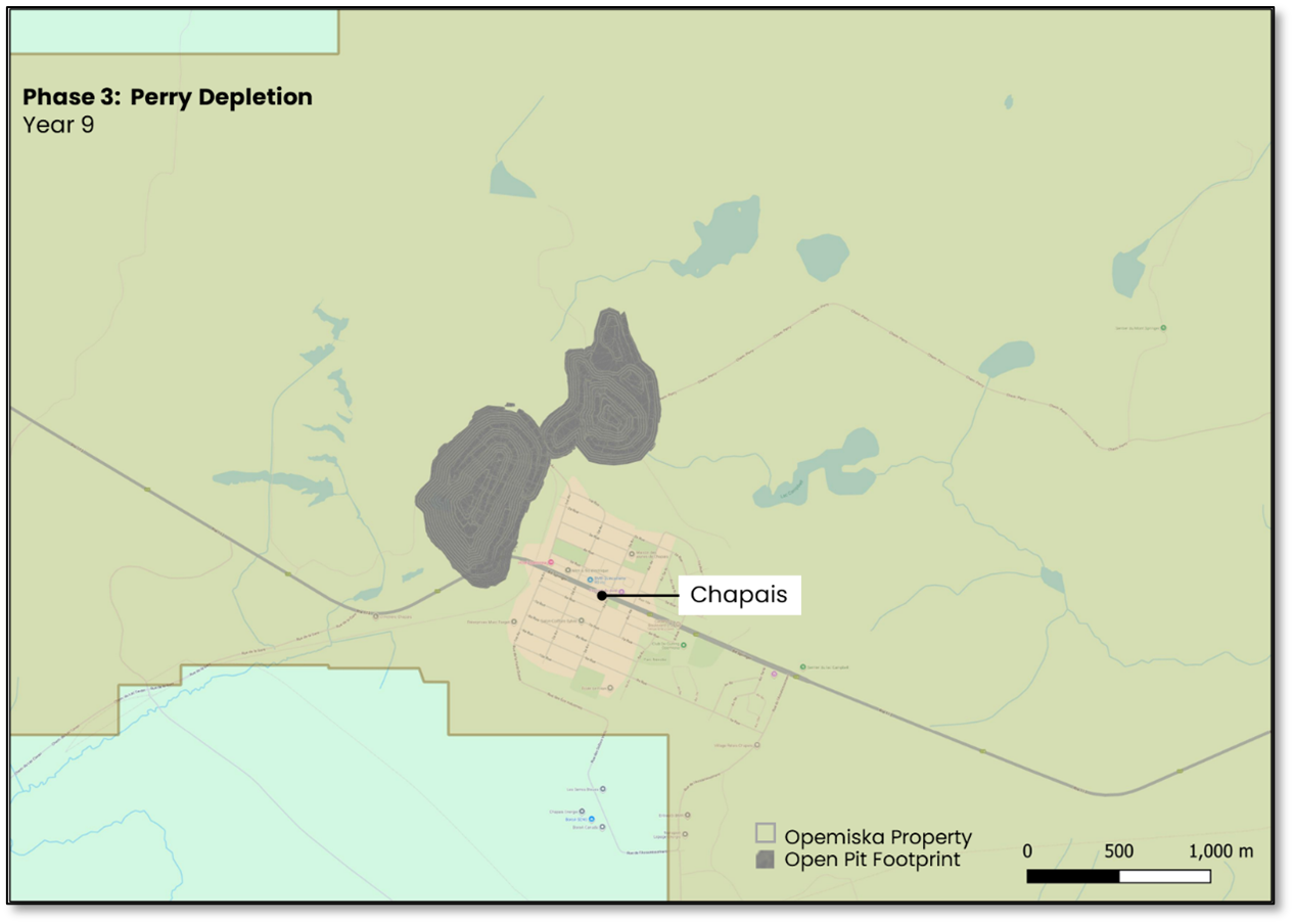 Opemiska’s site layout comprises the processing plant, power infrastructure, tailings management facility and administrative buildings. Figure 10 outlines Opemiska’s envisioned site layout.