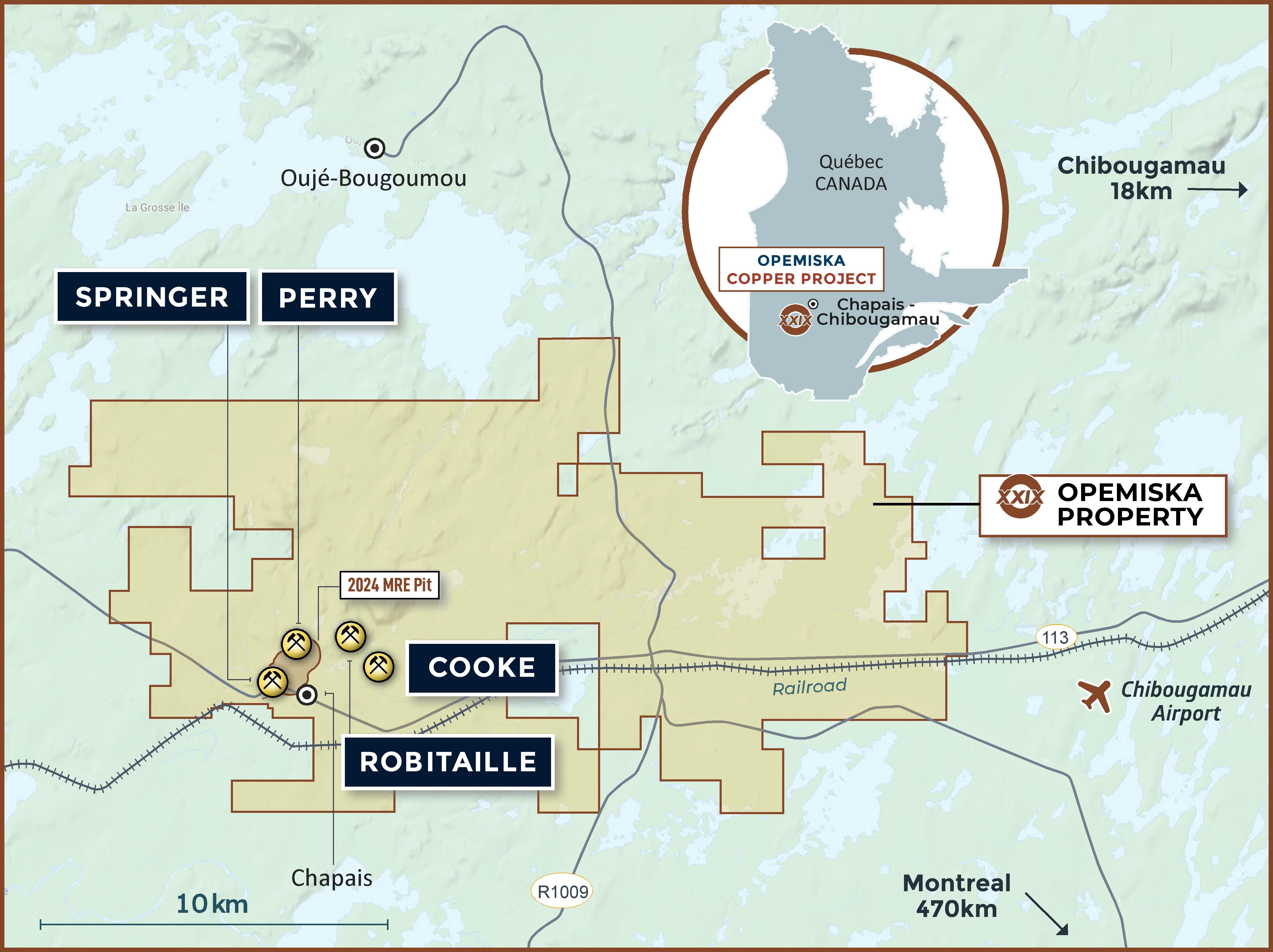XXIX acquired the Springer and Perry properties from Ex-In, who acquired the properties in 1993 and digitized the abundance of data from Falconbridge operations. Falconbridge, between 1953 and 1991, previously mined both the Springer and Perry mines. Together, they produced 23 million tonnes grading 2.4% copper and 0.3 g/t gold.